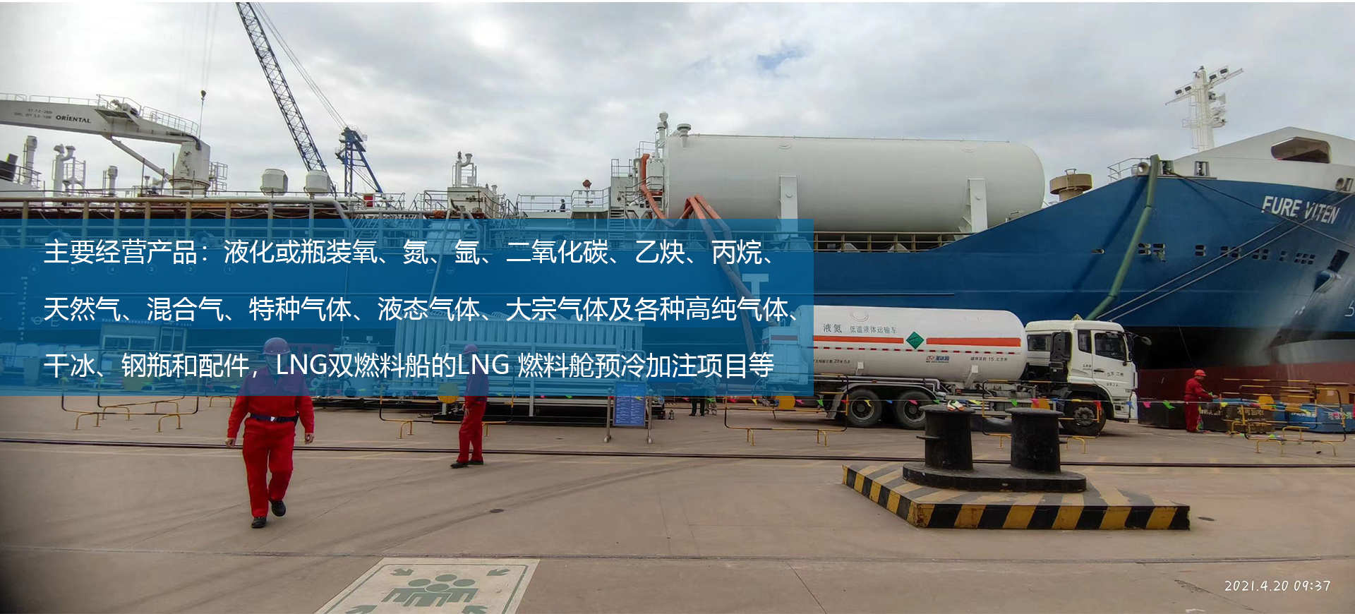 主要經(jīng)營(yíng)產(chǎn)品有:液化和瓶裝氧、氮、氬、二氧化碳、乙炔、丙烷、天然氣、混合氣、特種氣體、大宗氣體及各種高純氣體、干冰、鋼瓶、配件等。 LNG雙燃料船的LNG 燃料艙預(yù)冷加注項(xiàng)目,提供氣體試驗(yàn)及LNG燃料加注成套服務(wù),包括(不限于)氣源(LNG&LN2)供應(yīng)、現(xiàn)場(chǎng)氣試加注服務(wù)(技術(shù)服務(wù)、設(shè)備租賃、現(xiàn)場(chǎng)操作及回氣處理等服務(wù))。